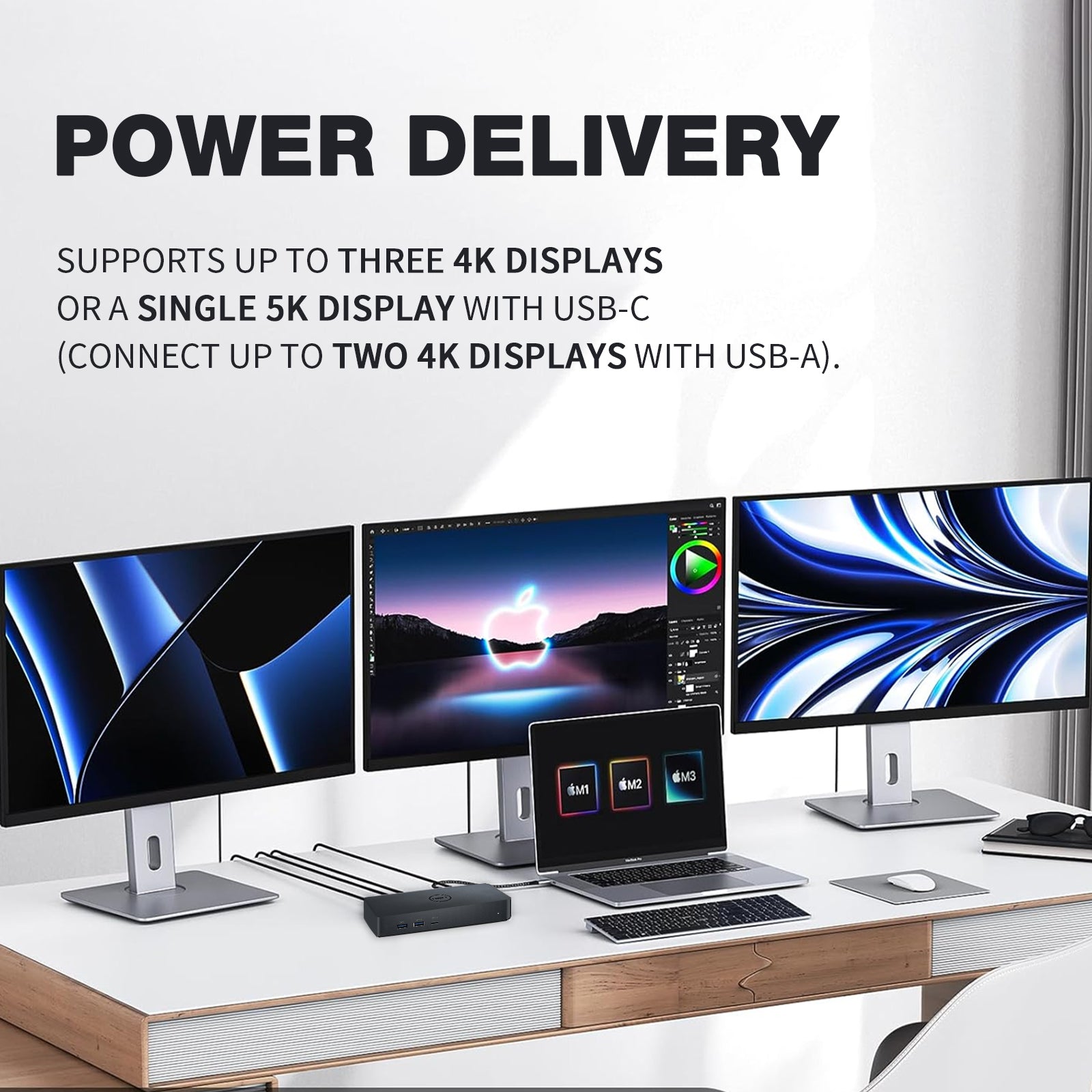 Supports up to 65W power delivery via USB-C for efficient laptop charging while maintaining performance.β Multiple Display Support